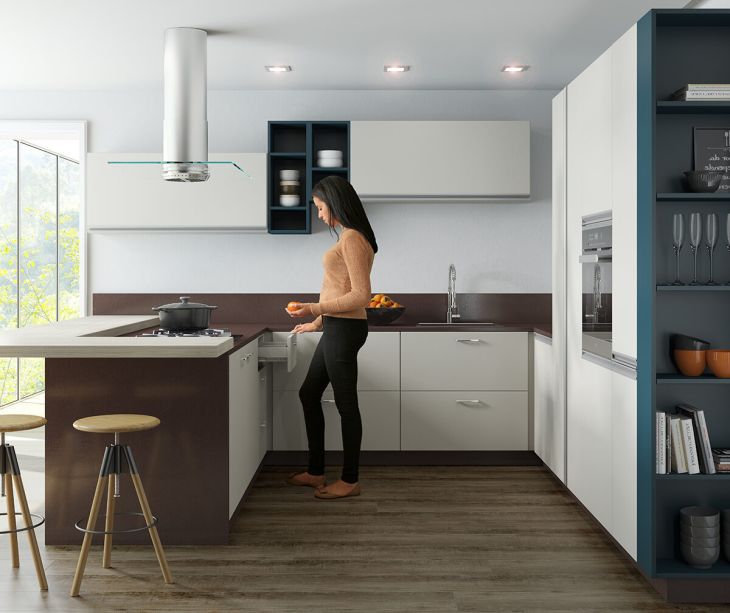 Trilho oculto com extração total, capacidade de carga de até 35kg e amortecimento integrado para fechamento suave. Poss…