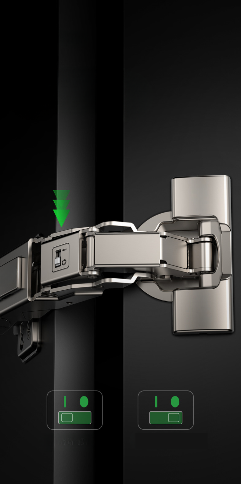 Dobradiça que possibilita ativar ou desativar o amortecimento (pistão) garantindo eficiência no fechamento da porta. Ajuste rápido sem necessidade de ferramentas. Com capas de acabamento (braço e caneca) em Titânio. A Dobradiça Absoluta é o que há de mais sofisticado em dobradiças! Disponível nos tipos Reta e Curva.